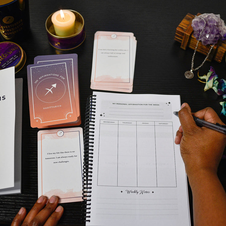 Expand your horizons with our Sagittarius affirmation series. These unique cards, books and other goods are infused with the archer's optimism and thirst for knowledge.